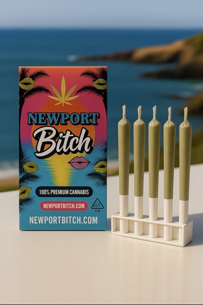 Newport Bitch is redefining the coastal high with equal parts effortless glamour and golden-hour glow. Our curated line of premium cannabis pre-rolls, flower, and edibles is crafted for the girls who pair silk sets with sunburns and never show up without a joint (or a vibe). Designed to elevate your rituals, not overwhelm them.